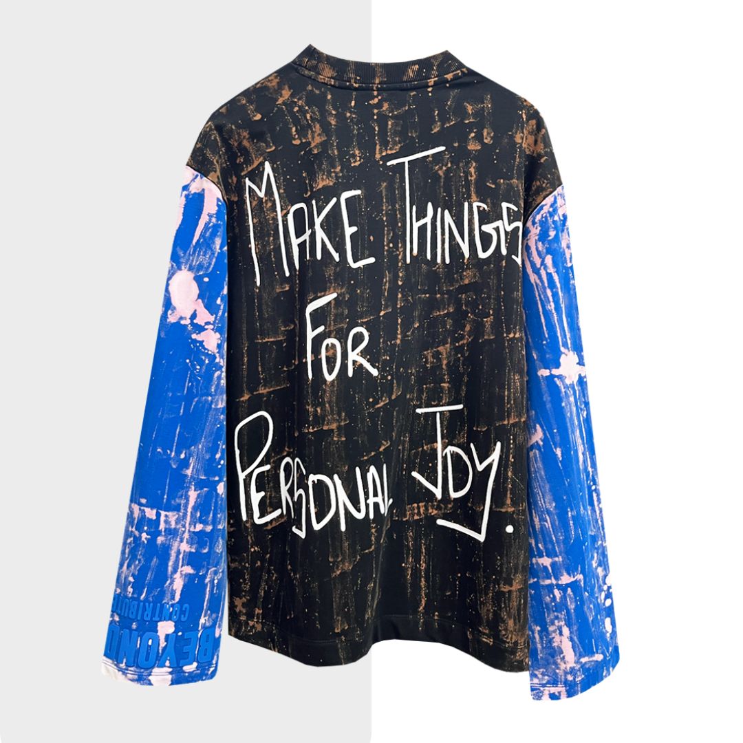 This is a cut and sew product made from our signature pieces to provide a unique expression. This piece is a collectors item.